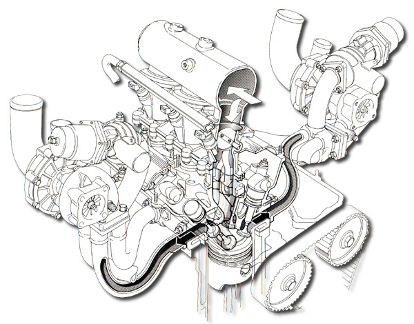 Par rapport à une culasse quatre soupapes conventionnelle, la culasse TRIFLUX présente des avantages considérables, qu'ils vont bien au-delà de la possibilité d'appliquer deux turbocompresseurs rationnellement.